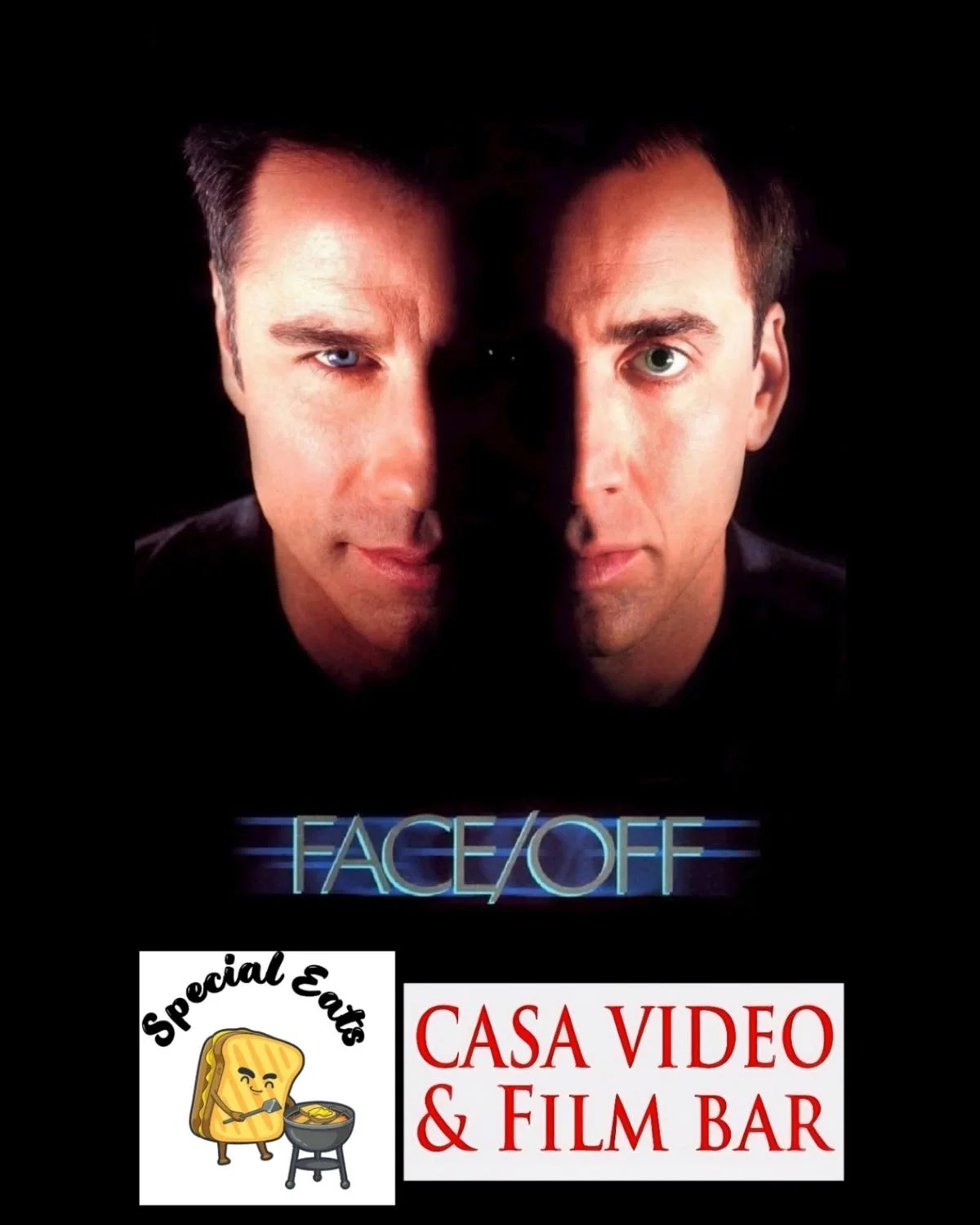 This one is always a favorite. Join us for the John Woo classic, starring John Travolta & Nicolas Cage in a all time banger, 1997’s “Face/Off”. We’ll be having the delicious Special Eats out on our patio. The movie starts at 8pm, the food truck will be here by 6pm.