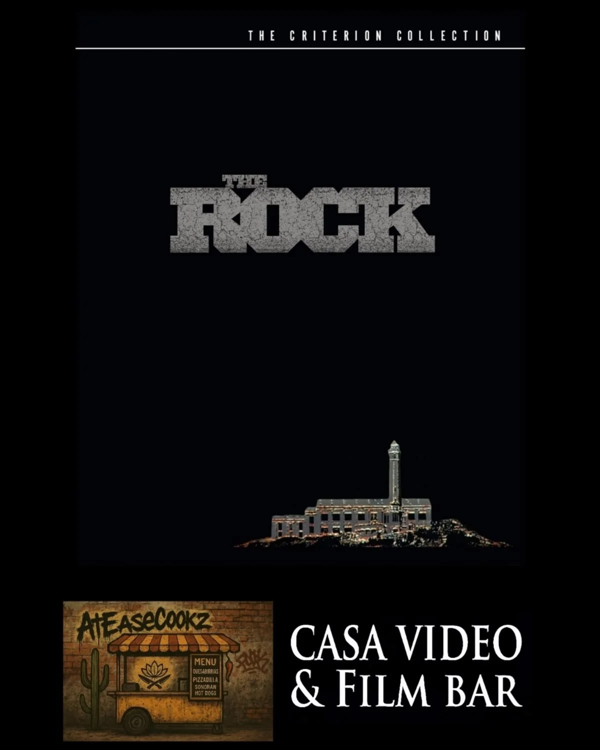 By Request! Join us for The Criterion Collection remaster of 1996’s block buster hit “The Rock”. We’ll be having the delicious At Ease Cooks out on our patio. The movie starts at 8pm, the food truck will be here by 6pm.