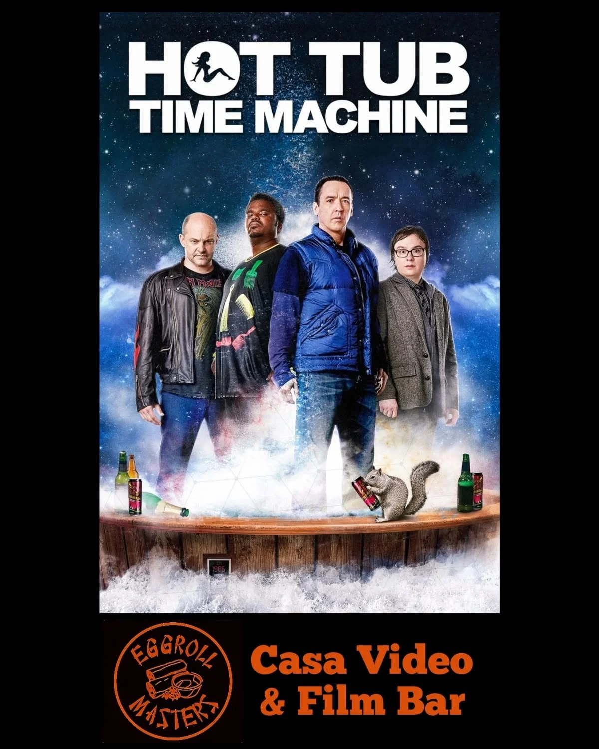 Wednesday…April 8th, 8pm. Join us for 2010’s hilarious sci/fi comedy “Hot Tub Time Machine”. Outside we have EggRoll Masters. The movie starts at 8pm, the food truck will be here by 6pm.