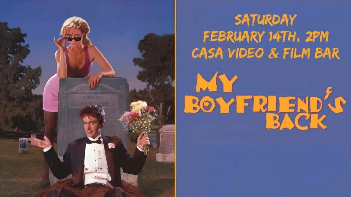Love Bites! We’re having a fun undead romantic theme this February. we start off with 1993’s “My Boyfriend’s Back”. Get here early for a good seat.