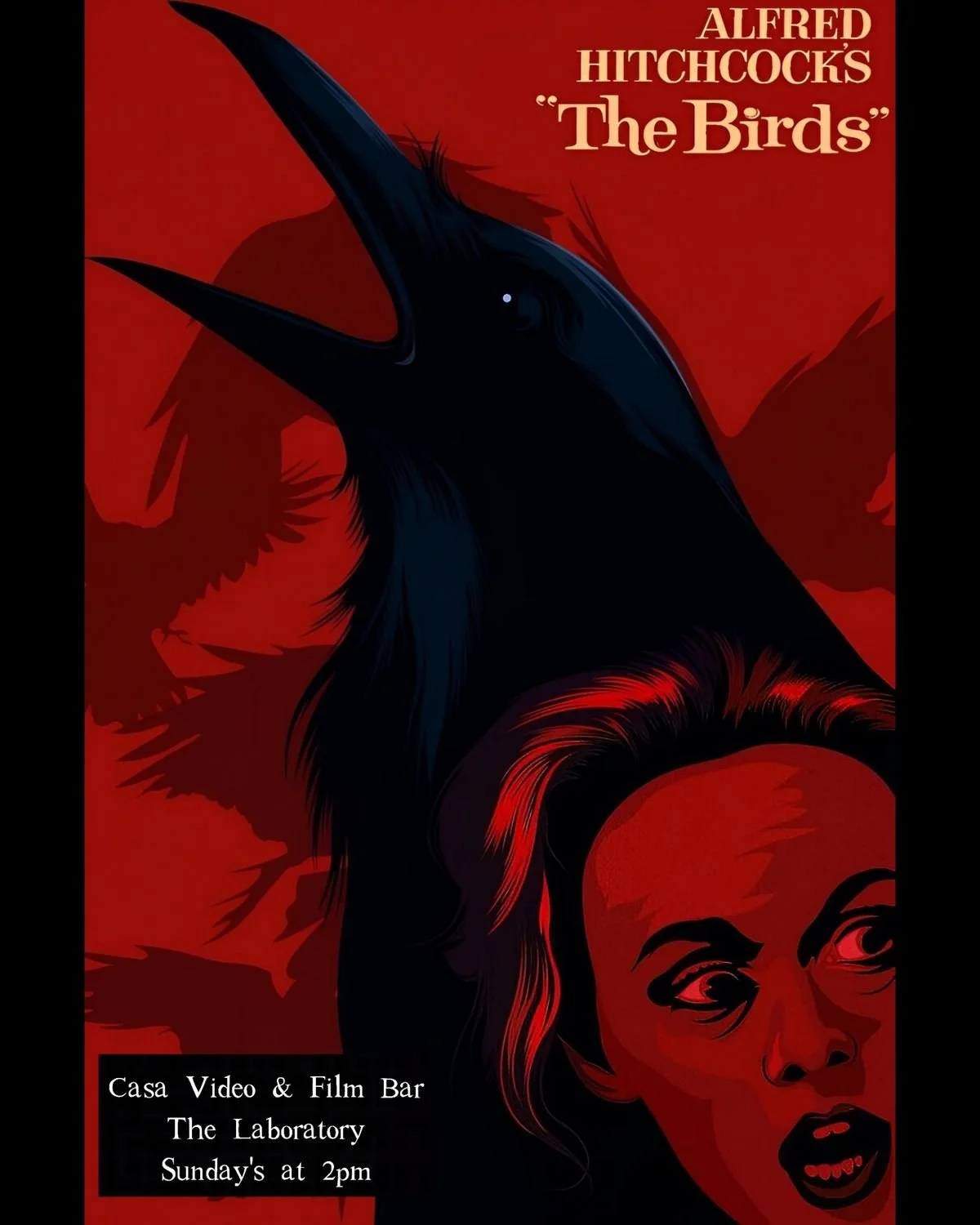 Welcome to The Laboratory. Join us for 1963 Alfred Hitchcock’s “The Birds'“. Get here early for a good seat.