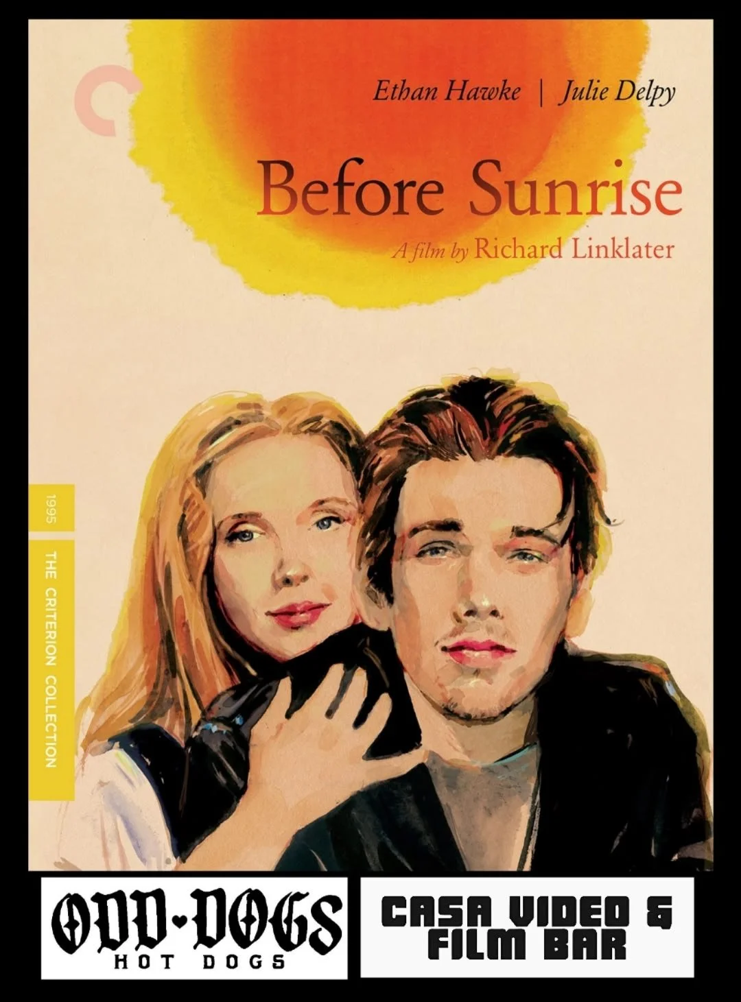 Sunday Night Movie. Join us for this beautiful film. we’re watching the Criterion Collection remaster of 1995’s “Before Sunrise”. Outside the delicious Odd Dogs Hot Dogs will be on our patio. Check out their menu! The movie start at 8pm, Odd Dogs here by 5pm. Get here early for a good seat.