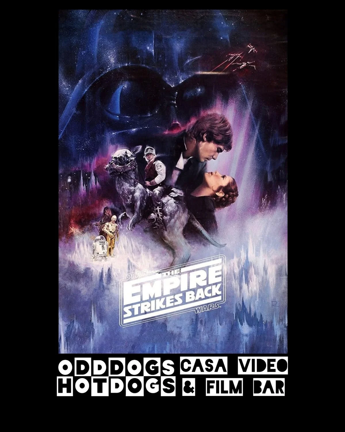 Sunday Night Movie. One of the best! At 7pm we’ll be playing 1980’s “Star Wars: the Empire Strikes Back”. Outside the delicious Odd Dogs Hot Dogs will be on our patio. Check out their menu! The movie start at 8pm, Odd Dogs here by 6pm. Get here early for a good seat.