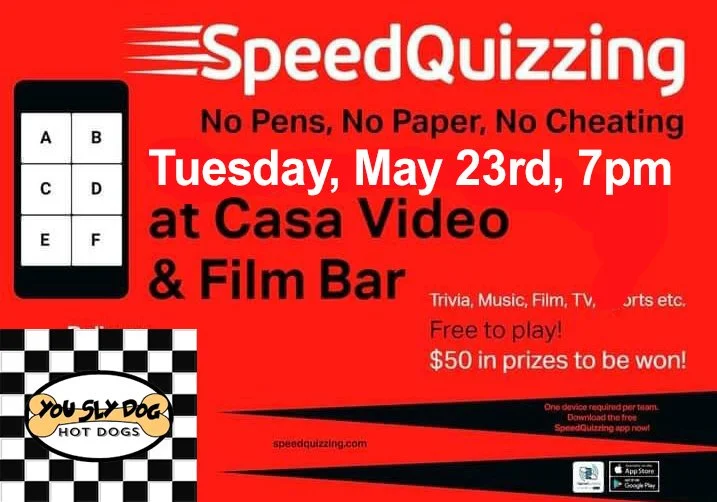 Grab your friends! Grab your phone! Grab a seat! We've got SpeedQuizzing team trivia! The folks from You Sly Dog will be here with their delicious hot dogs by 6. Trivia starts at 7pm.