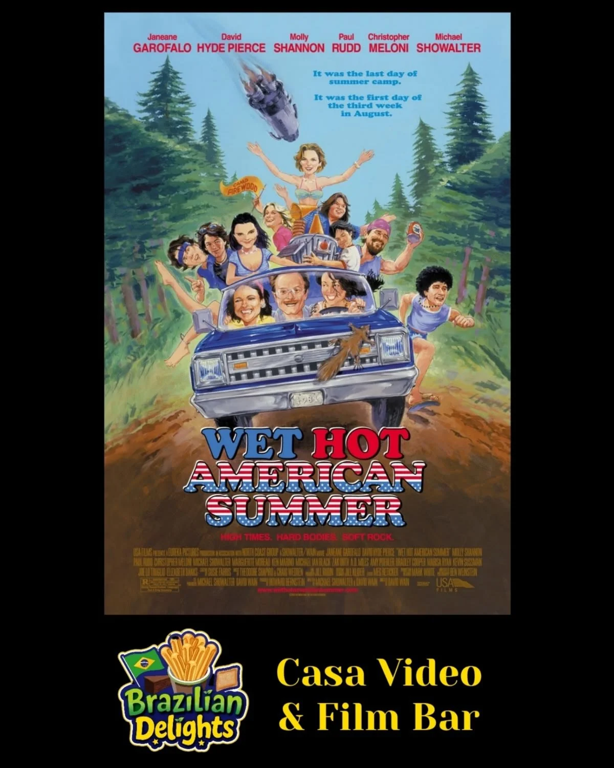 Join us for 2001’s comedy classic “Wet Hot American Summer”. Outside we’ll have Brazilian Delights on our patio. Check out their menu. The movie starts at 8pm, Brazilian Delights will be here by 6pm.