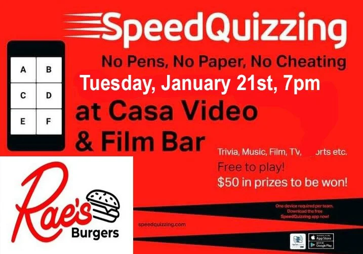 Grab your friends! Grab your phone! Grab a seat! We've got SpeedQuizzing team trivia! Rae’s Burgers will be here by 6pm to satisfy any hunger. Trivia starts at 7pm.
